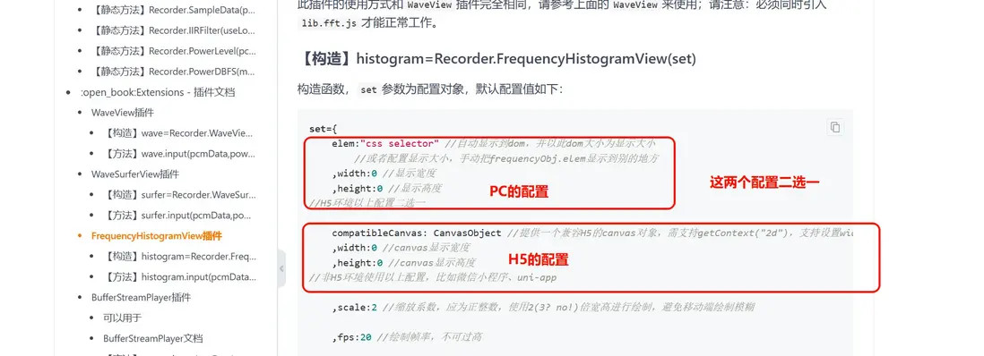 在open後給waveConfig綁定canvas容器,然後通過Recorder.FrequencyHistogramView方法繪製波形。