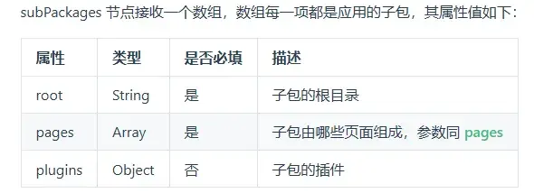 "packages": ["subPackages/setting"] // 進入指定頁面後需要加載的分包 root 或 name