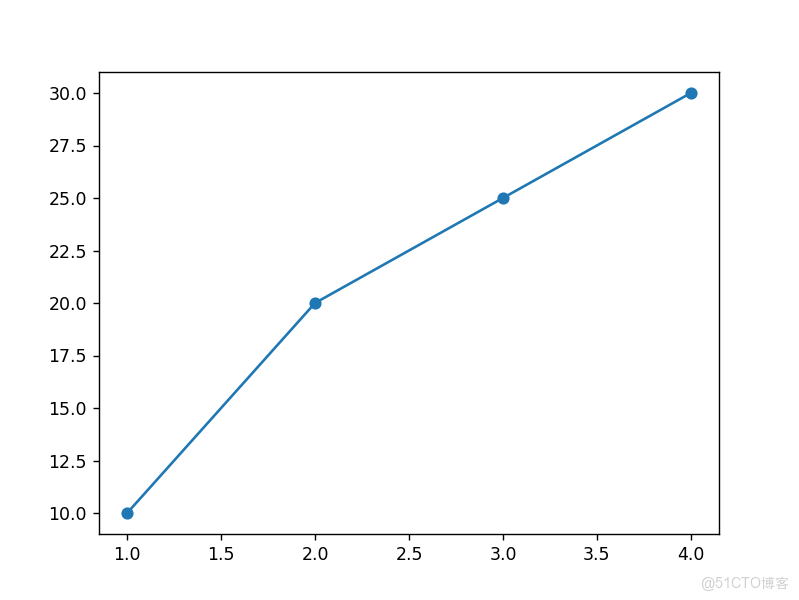 plt.plot([1, 2, 3, 4], [10, 20, 25, 30], marker='o') # 圓形標記