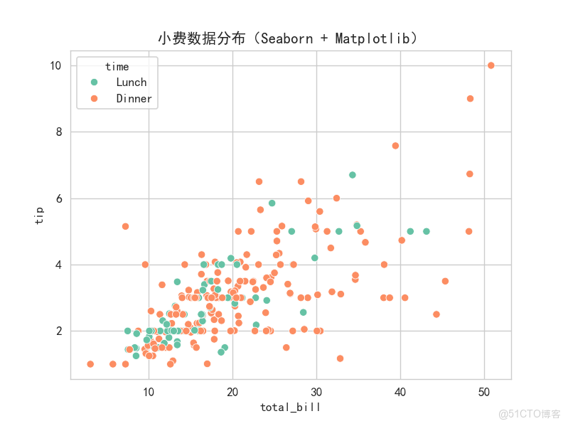 plt.title("小費數據分佈(Seaborn + Matplotlib)")