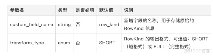 指定新增字段的名稱,該字段用於存儲原始的 RowKind 信息。