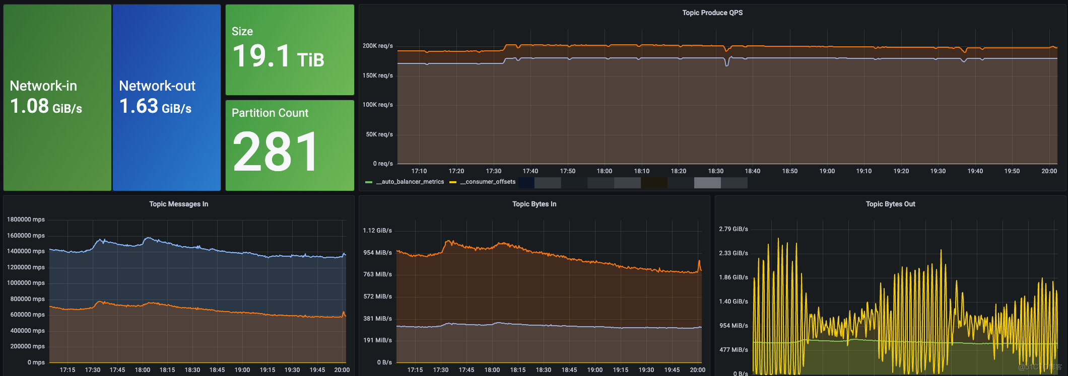 - 獲得“秒級”的極速擴縮容能力:過去困擾我們運維團隊的擴容難題,在 AutoMQ 上徹底成為了過去式。由於擴容新的 Broker 節點不再需要進行耗時的數據搬遷,整個過程變得異常迅速。憑藉 AutoMQ 分區的秒級遷移能力以及其內置的 Self-Balancing 自動流量均衡機制,我們現在可以在數十秒內,平滑地為集羣擴展出 1 GiB/s 的吞吐容量。這種極致的彈性伸縮能力,意味着我們可以從容應對任何突發的業務流量增長,為騰訊音樂未來的業務發展提供了堅實而靈活的基礎設施保障。