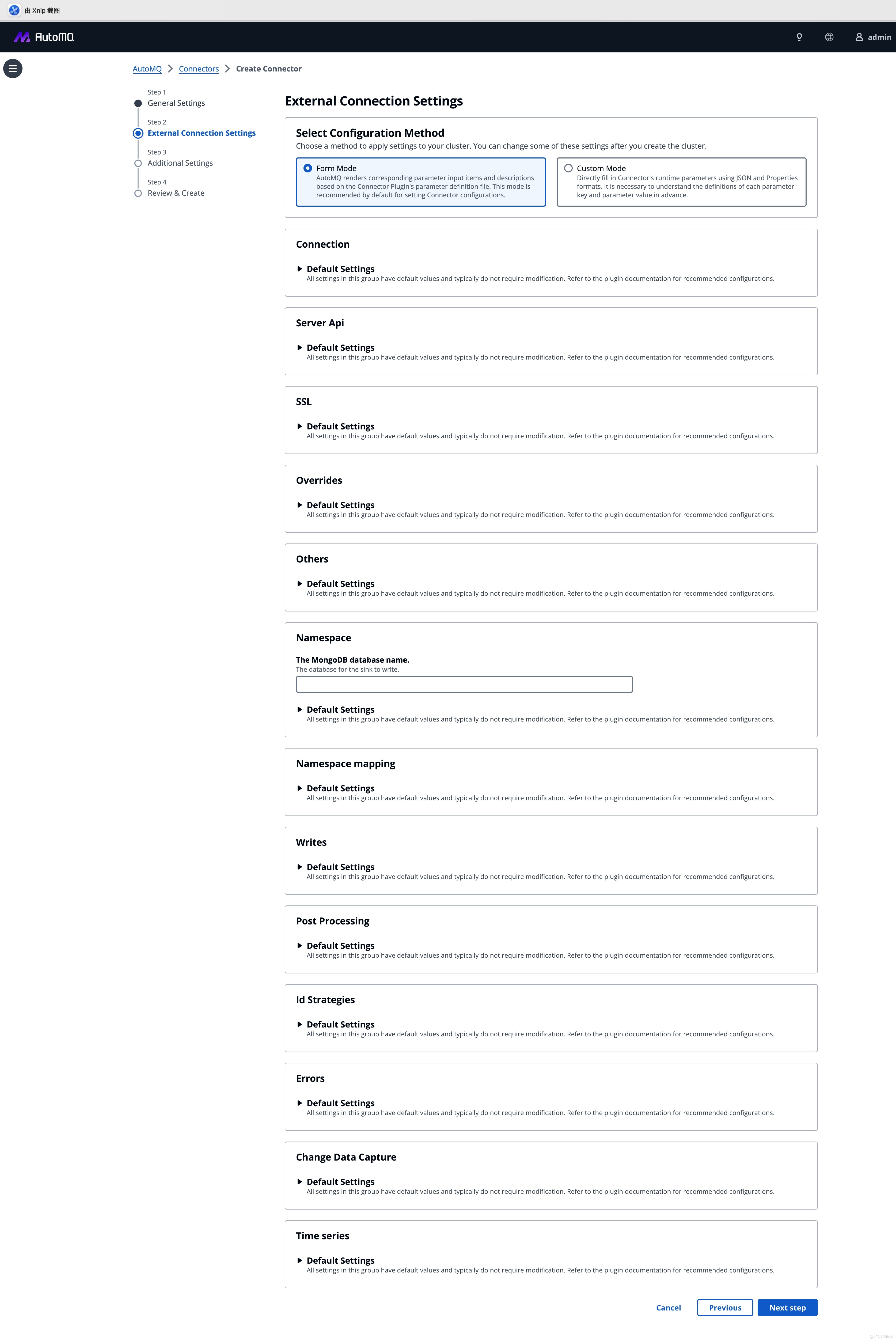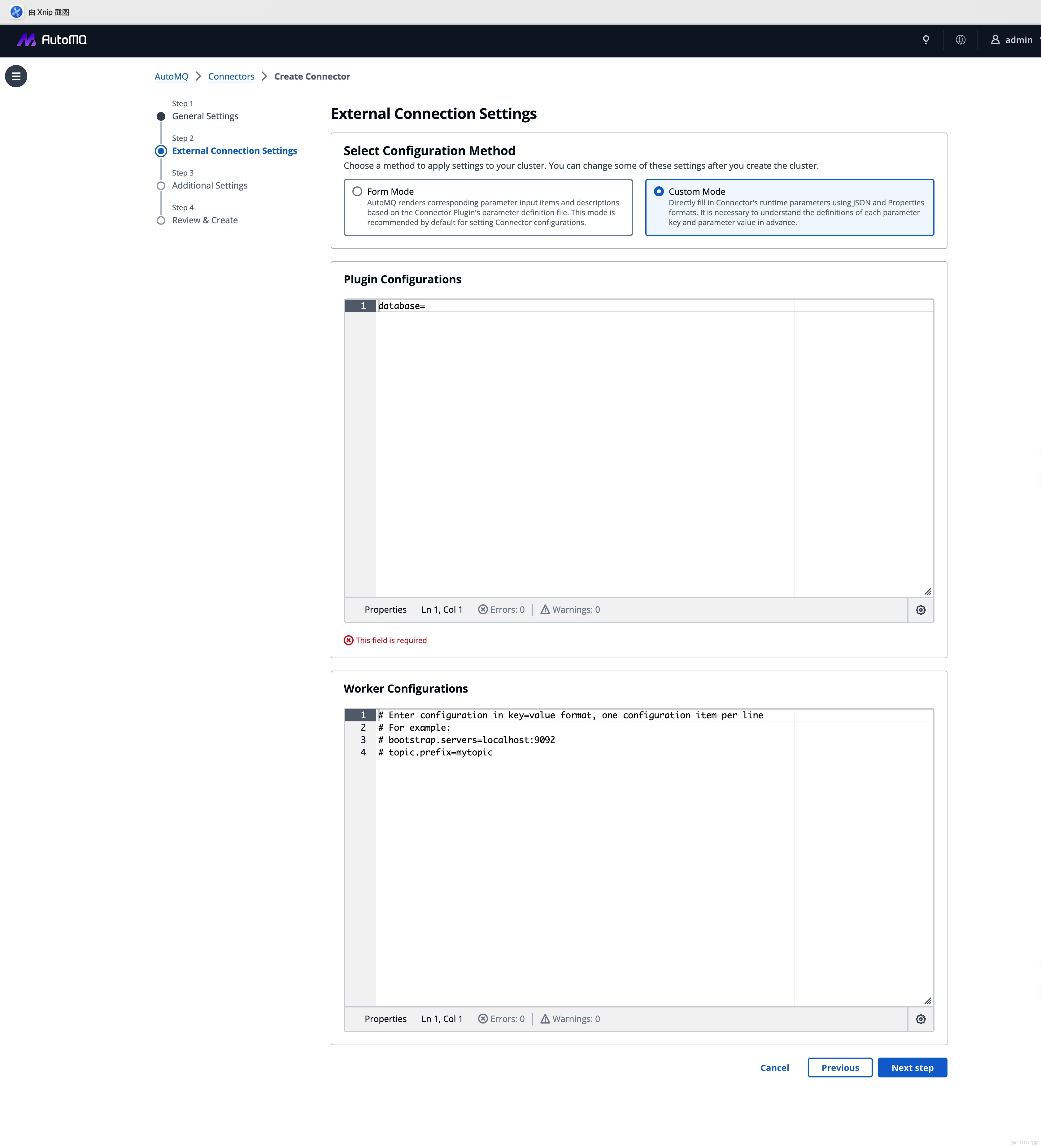 - 自定義模式:針對 Debezium 等複雜場景,支持直接粘貼 JSON/Properties,確保存量業務的平滑遷移。