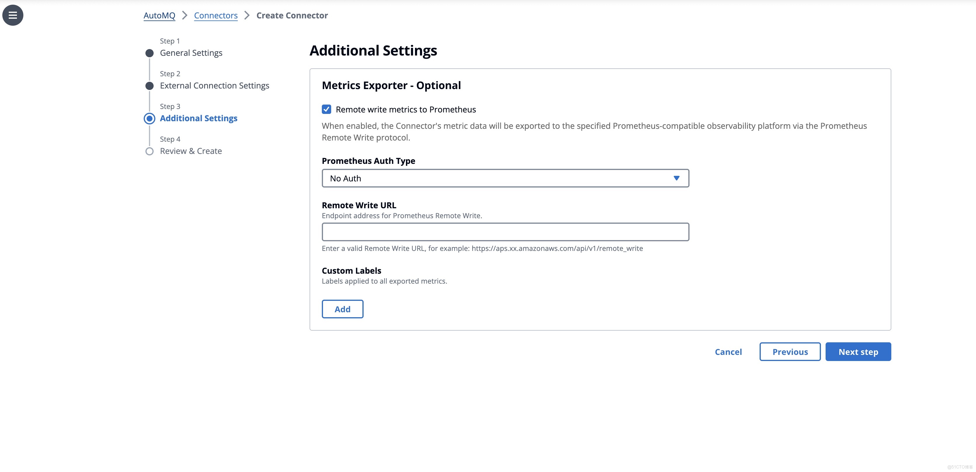 在“額外設置”中,我們內置了標準化的可觀測性集成。通過勾選 Remote Write,Connector 的監控指標可直接對接到 Prometheus/Grafana 體系,無需額外部署 Exporter,徹底告別黑盒運維。