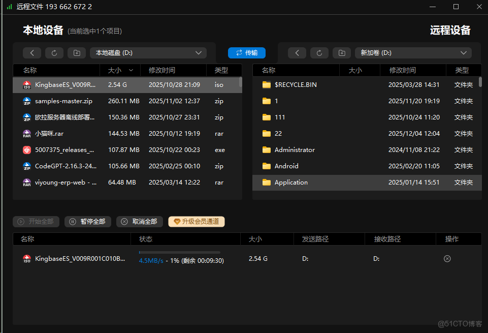 實測傳輸 2.54GB 大文件,總耗時 6 分鐘,平均速度7MB/s。支持斷點續傳、拖拽傳輸、批量操作。