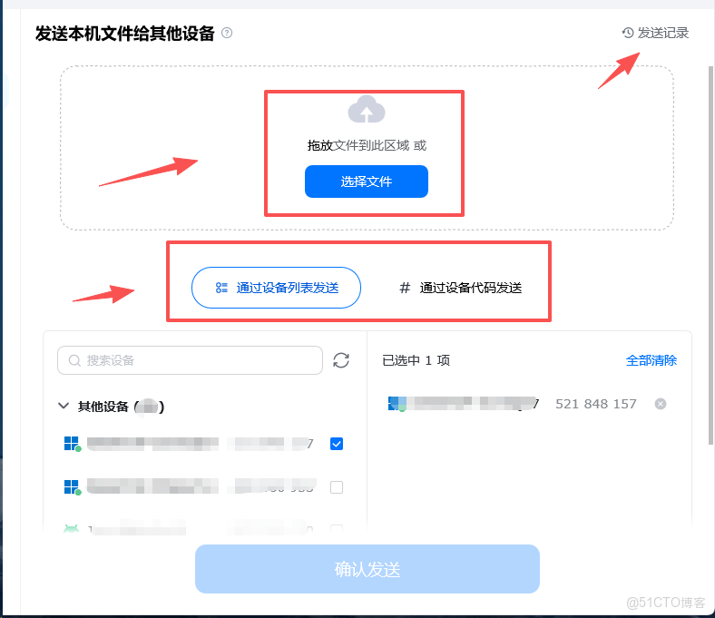 或者直接拖拽文件到指定區域,選擇設備列表勾選傳送設備或設備代碼發送,兩種發送方式,親測十分快捷,還有每次的文件發送記錄可查,方便的同時又放心