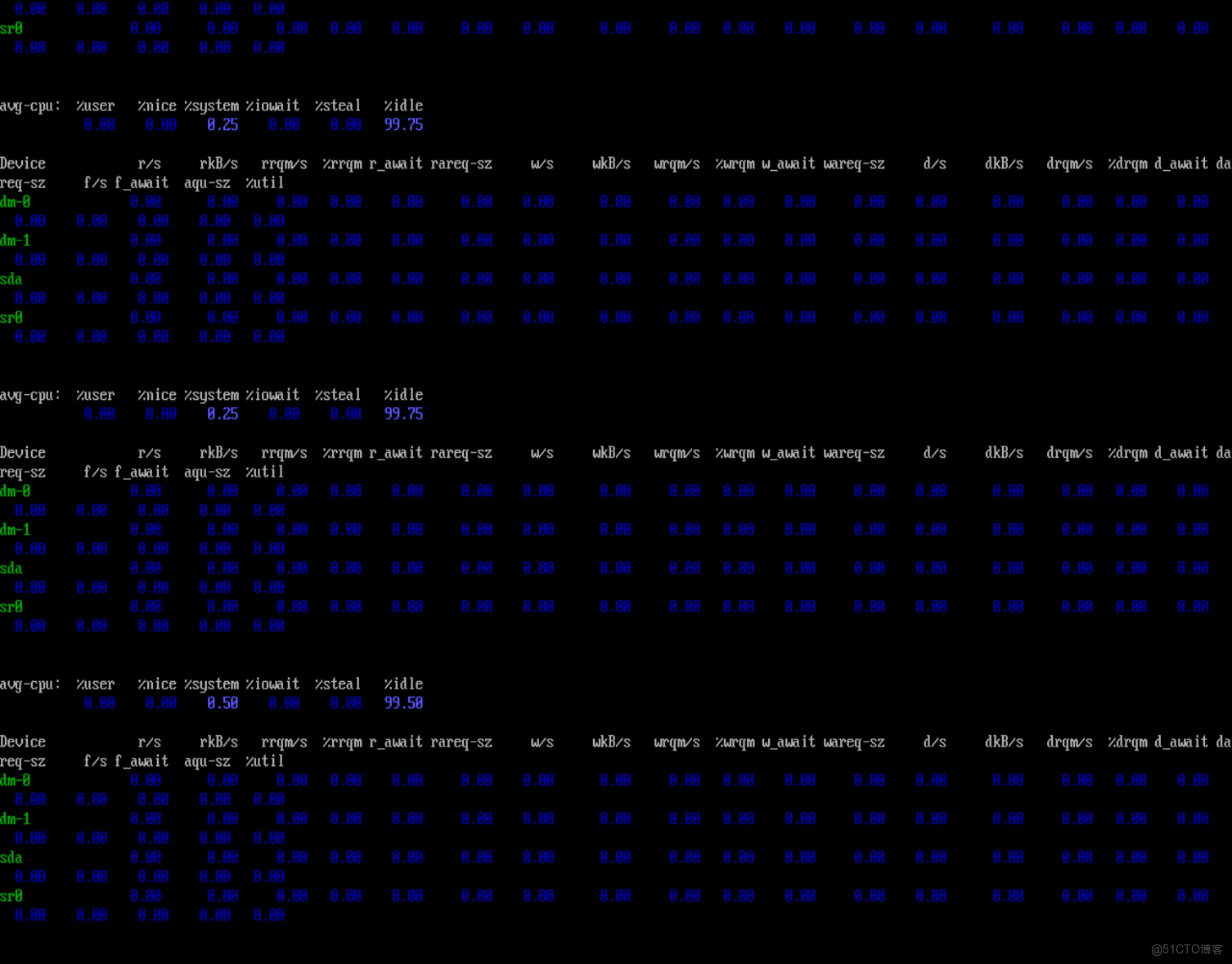 該命令可以顯示磁盤的使用情況以及磁盤IO等待時間,幫助我們瞭解是否存在磁盤瓶頸。