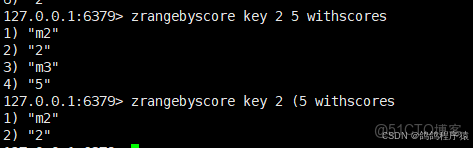 zrangebyscore返回分數在 min 和 max 之間的元素,默認情況下,min 和 max 都是包含的,可以通過 ( 排除。