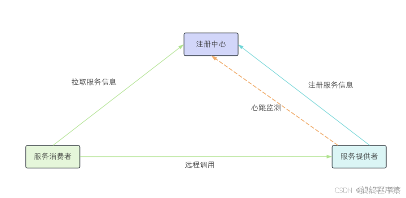 註冊中心:維護⼀個服務列表,哪個機器上線了,哪個機器宕機了,這些信息都會⾃動更新到服務列表上,客⼾端拿到這個列表,直接進⾏服務調⽤即可。這個就是註冊中⼼