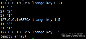 lrange獲取從 start 到 stop 區間的所有元素,左閉右閉,越界的下標不返回元素。