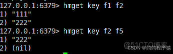 時間複雜度:只查詢⼀個元素為 O(1), 查詢多個元素為 O(N), N 為查詢元素個數. 返回值:字段對應的值或者 nil。