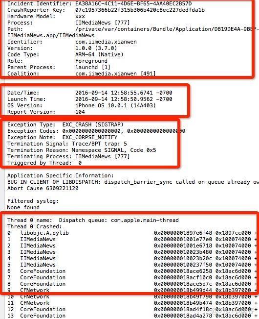 b.如果產品在上架過程中發生崩潰,蘋果那邊的測試人員給我們直接發送過來已經整理好的崩潰日誌文件,只需要根據其解決問題就行。