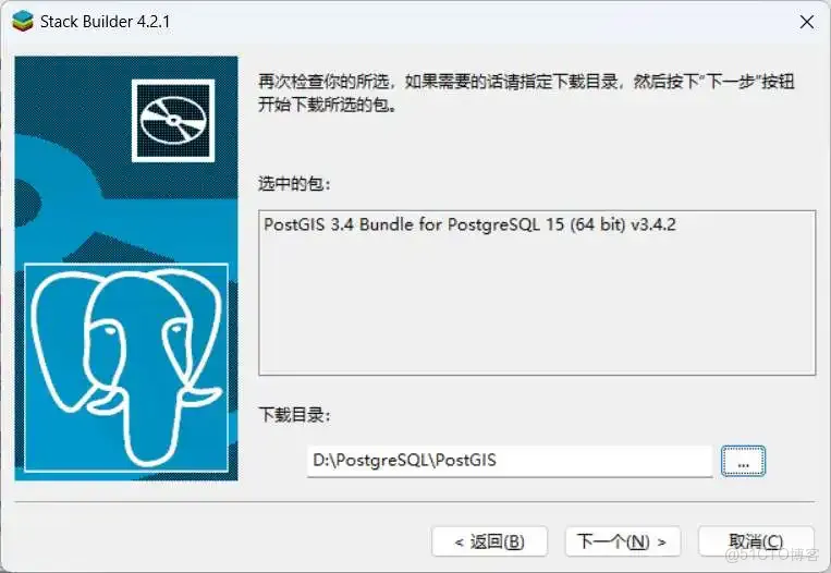 隨後,下載目錄建議放在我們前述PostgreSQL的安裝路徑中的PostGIS文件夾內,如下圖所示。