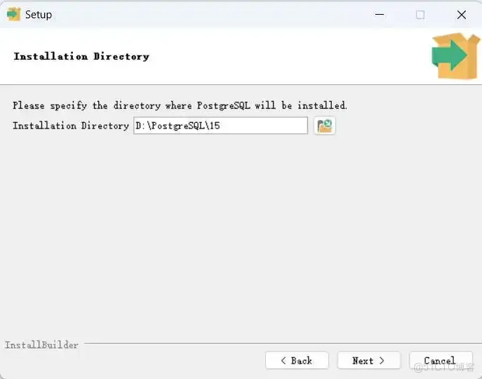 首先,是需要選擇一個PostgreSQL的安裝路徑。建議安裝在除C盤之外的其他路徑,如下圖所示。