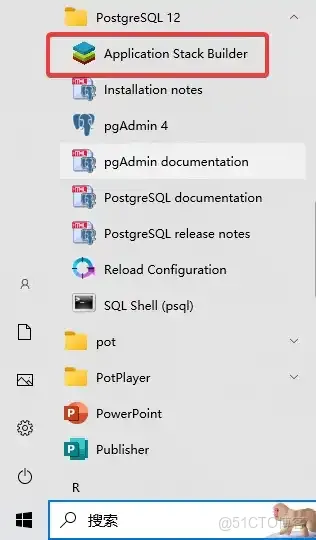 接下來,需要進行PostGIS的部署。如果前面大家沒有打開Stack Builder,那麼可以在開始菜單中找到其並打開,如下圖所示。