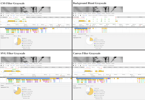 In this post, we’ll take a look at one of the most popular image effects, grayscale, and assess both the ease of implementation and performance implications of HTML canvas, SVG, CSS filters, and CSS blend modes. Which one will win?