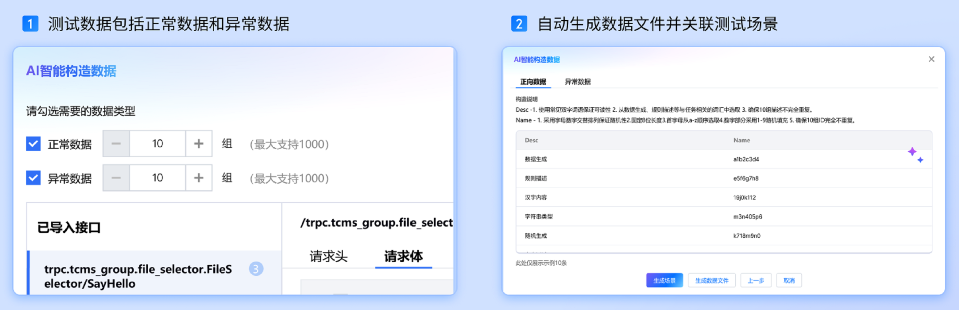 通過AI智能分析,將流量進行自動打標,生成接口構造規則,再根據用户測試需求有效選舉,自動沉澱並定時更新數據集。