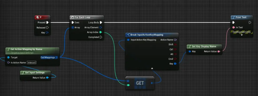 Q:在UE引擎中,我想創建一個系統,例如,它顯示:使用 [E] 打開門。玩家可以自定義按鍵設置,如何訪問這個輸入值,以便於我能在UI中更替為實際的按鍵?