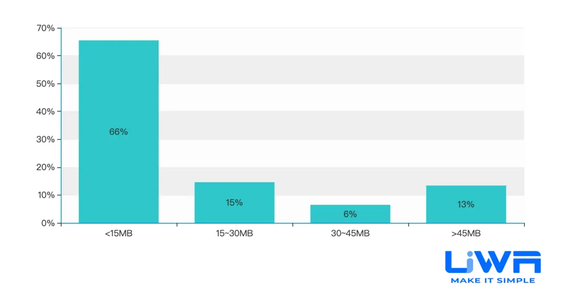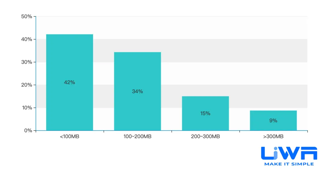 總體堆內存一直是項目的內存瓶頸,雖然在過去一年有所起伏,但有58%的項目堆內存大於100MB,大於200MB的項目也佔24%。這主要是遊戲的重度化所致,但另一方面也是研發團隊對於Mono堆內存分配疏於管理所致,例如配置文件的序列化庫使用不當等,建議研發團隊在項目中前期選擇序列化庫時儘可能做更多的調研或者實驗,來制定更合適合於自身項目的序列化配表解決方案。