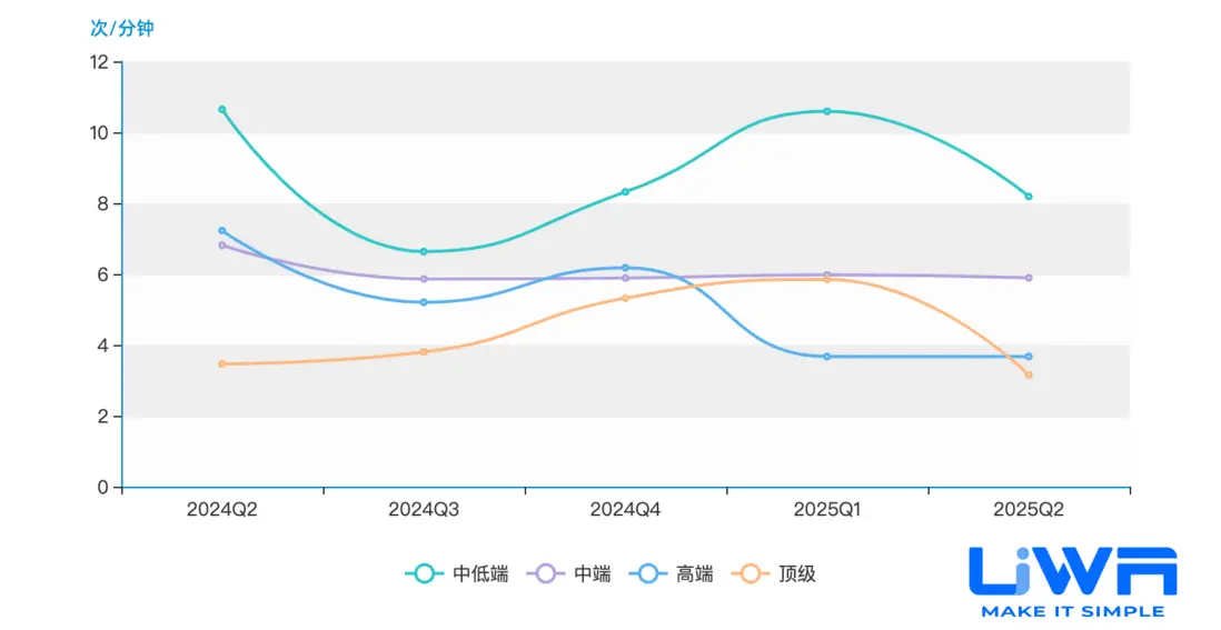 卡頓均值在2025年Q1上揚,後續卡頓值維持在6次/分鐘,建議研發團隊使用UWA GOT Online - Overview模式測試,並通過卡頓分析功能來進行檢測和優化。