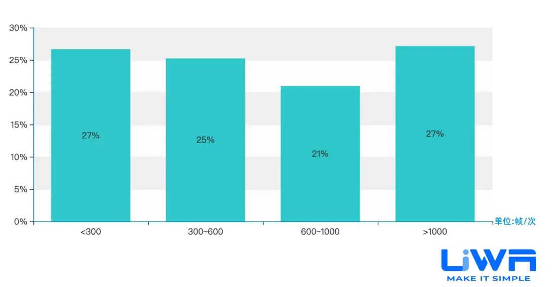 僅有27%的項目將GC調用頻率控制在1000幀/次以上;52%左右的項目小於600幀/次,説明GC問題依然值得關注。