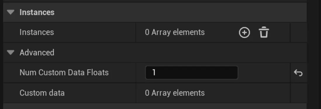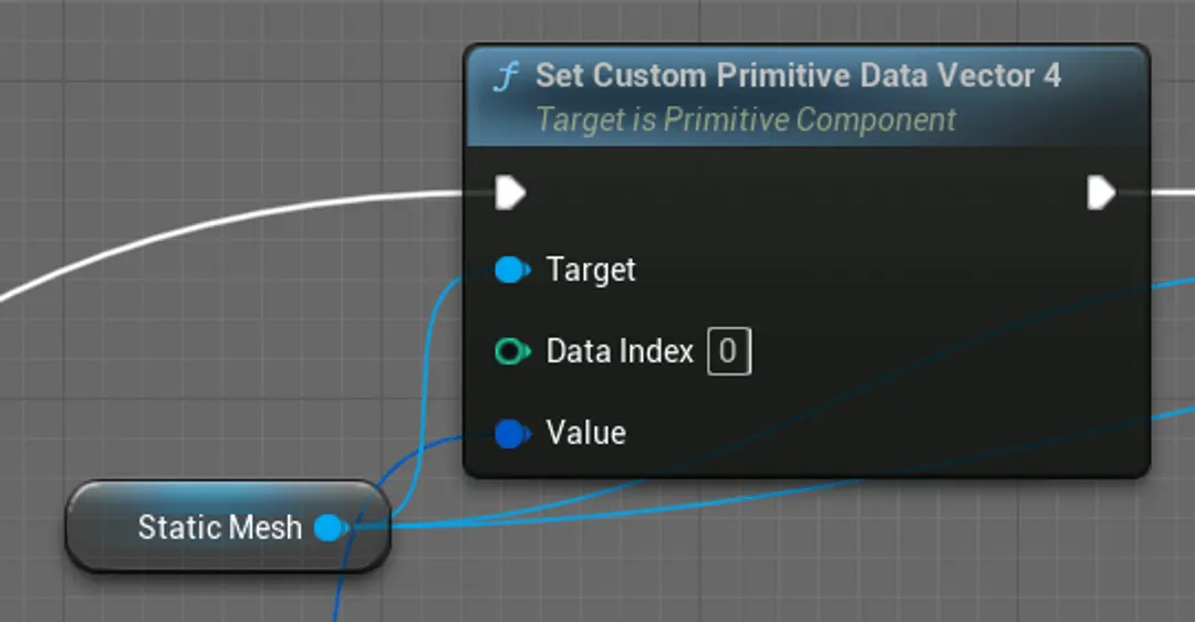 如果希望讓實例能夠在不同的生命值情況下有不同的材質顯示,使用Custom Primitive Data功能會是一種比較巧妙的方式,可以在運行時修改材質中的標量和矢量參數,而不需要設置多個材質實例。