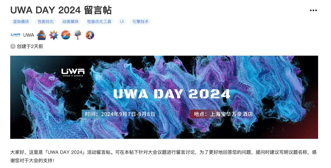 以上兩條問答均為UWA DAY 2024大會中對於《Unity移動遊戲性能優化全解析與小遊戲轉化的實戰經驗》議題的提問精選,歡迎大家前往UWA問答【UWA DAY 2024 留言帖】下一起討論,關於大會的疑問以及針對大會議題內容的提問,我們將盡快為您解答。