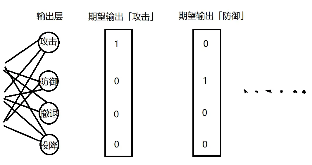 選取並想好了數據的歸一化處理後,我們需要擬定一部分輸入和輸出。設計訓練輸入還是比較簡單的,但輸出怎麼量化呢?因為決策要做的可是一個行為!我們可以這麼做,將輸出設置為執行某個行為的概率: