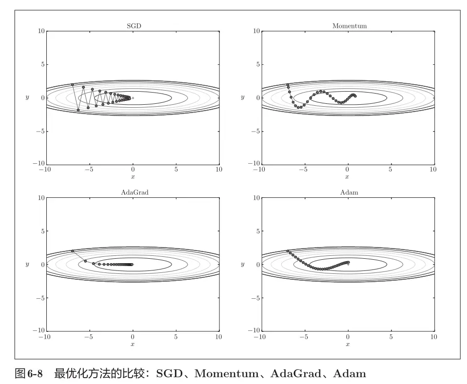 - Adam:將Movment與AdaGrad結合了起來,通過組合二者的優點,有望實現參數空間的高效搜索。