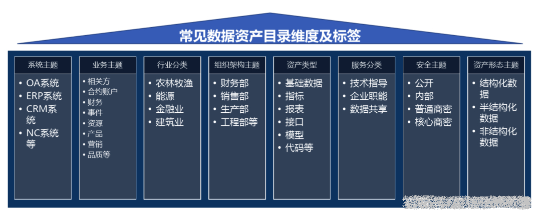 我們可以通過系統主題,業務方向,行業分類,組織架構等方向,對數據資產進行分類。