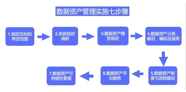《數據資產》管理這麼重要,是企業數字化轉型的必經之路,那麼組織應該如何實施落地呢?主要有以下七個步驟: