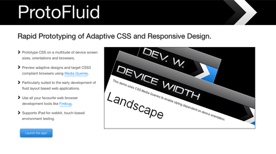 A tool for rapid prototyping of responsive design. You can prototype CSS on a variety of popular device sizes, orientations and browsers, be they phones (BlackBerry Torch, Google Nexus One, iPhone, Motorola Droid), tablets (BlackBerry Playbook, iPad, Samsung Galaxy Tab, Dell Streak), monitors or televisions (720p, 1080p). You can preview designs right in the browser and use your development tools like Firebug. You might want to check an alternative tool ScreenFly as well.