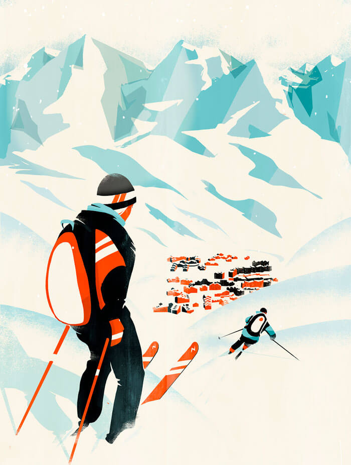 Cover illustration of ski resort Val Thorens for the EasyJet magazine Traveller.