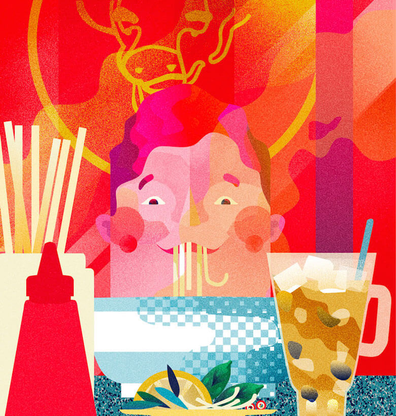 Illustration for the Wallstreet Journal in a piece about the trouble with too much tech. Great use of mid-century era’s furniture to create a wonderful composition.