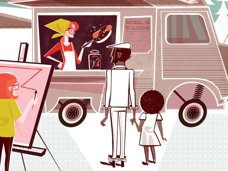 One part of a series of illustrations for the inaugural set of artwork launched for Facebook Event themes. Special color combination.