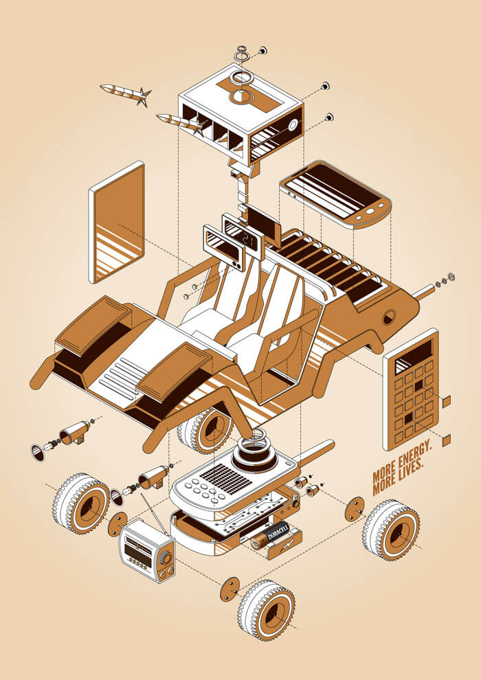 The details in this illustration for Duracell are amazing. The imagination of the illustrator is powerful.
