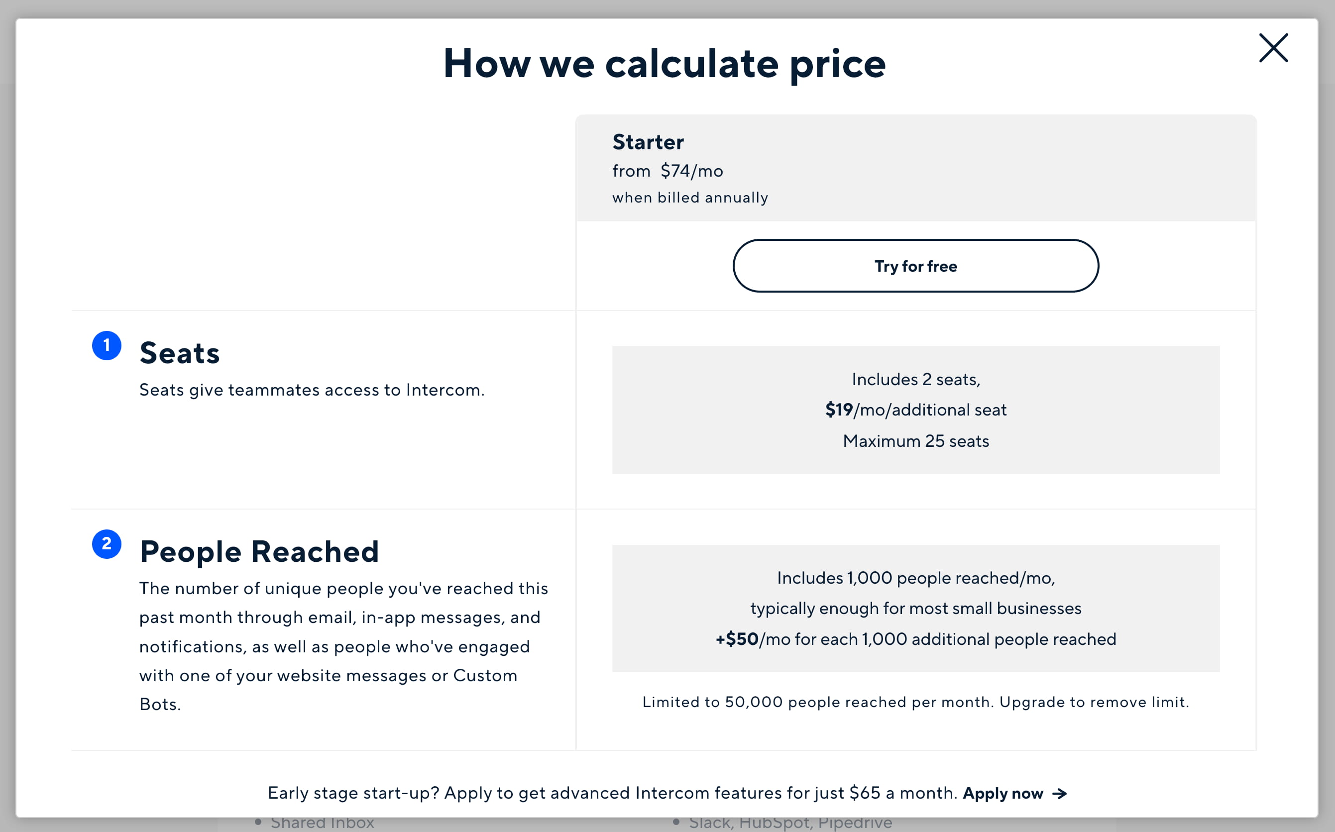 Intercom explains how the price is calculated as well as any limitations and important facts to keep in mind when choosing a plan.
