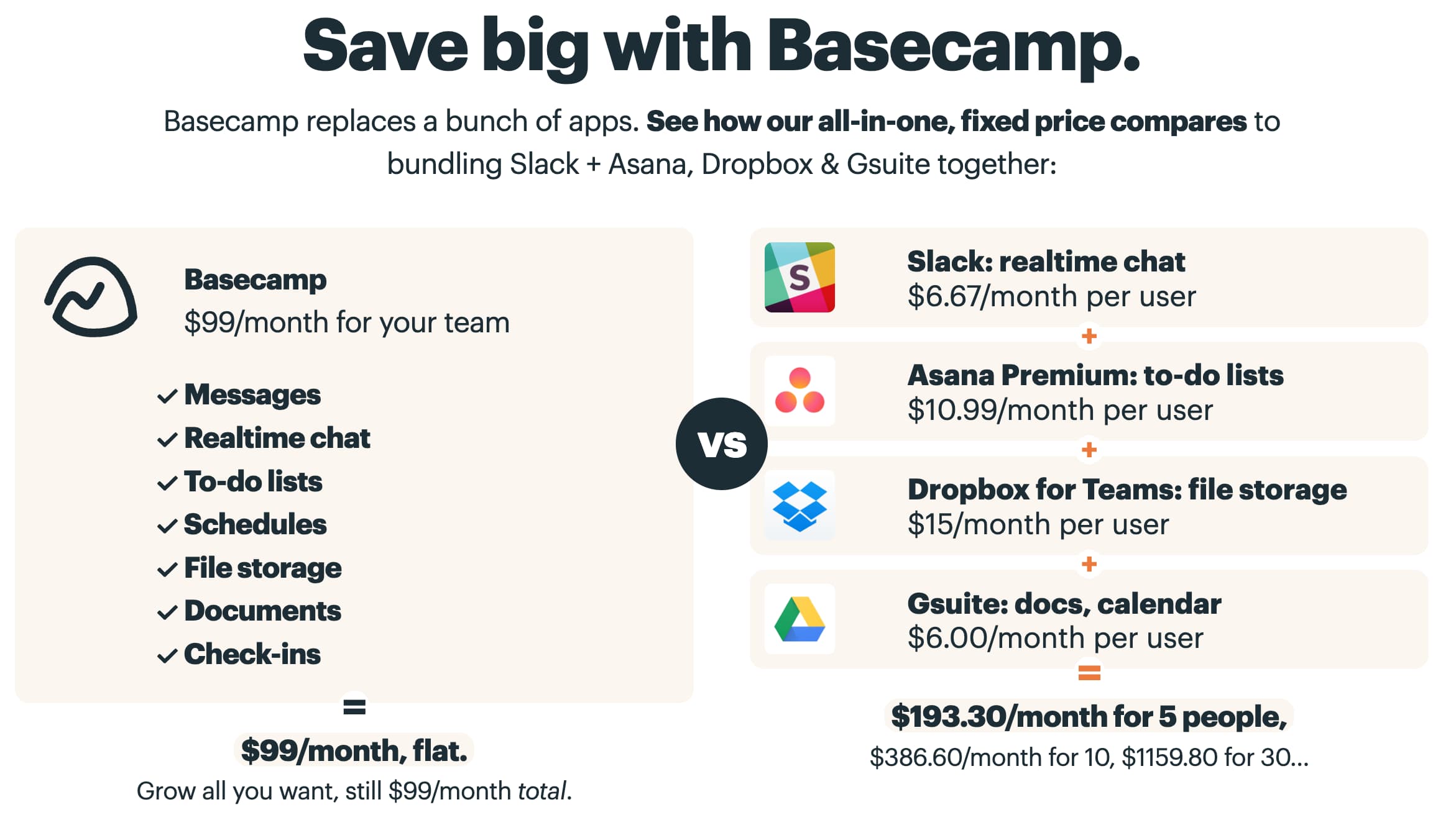 Gumroad provides a competitive matrix comparing their pricing with the pricing of their main competitors. So does Basecamp.