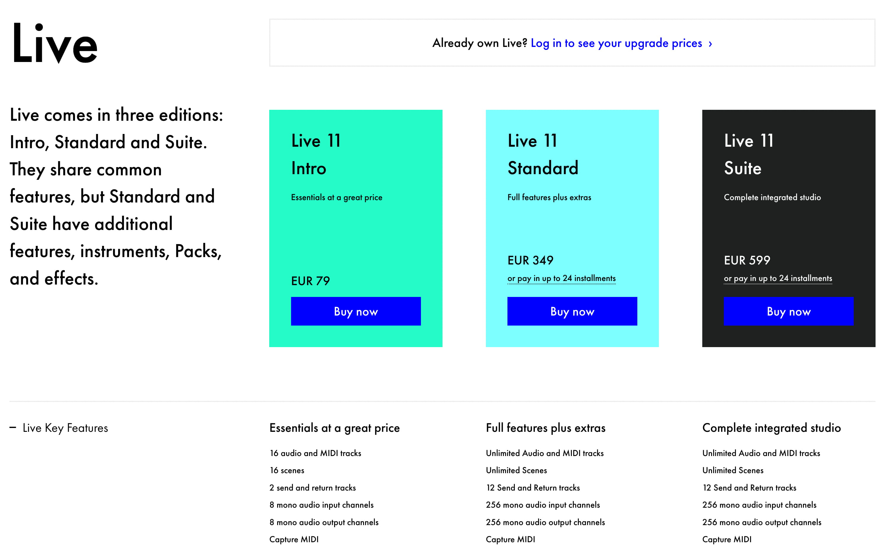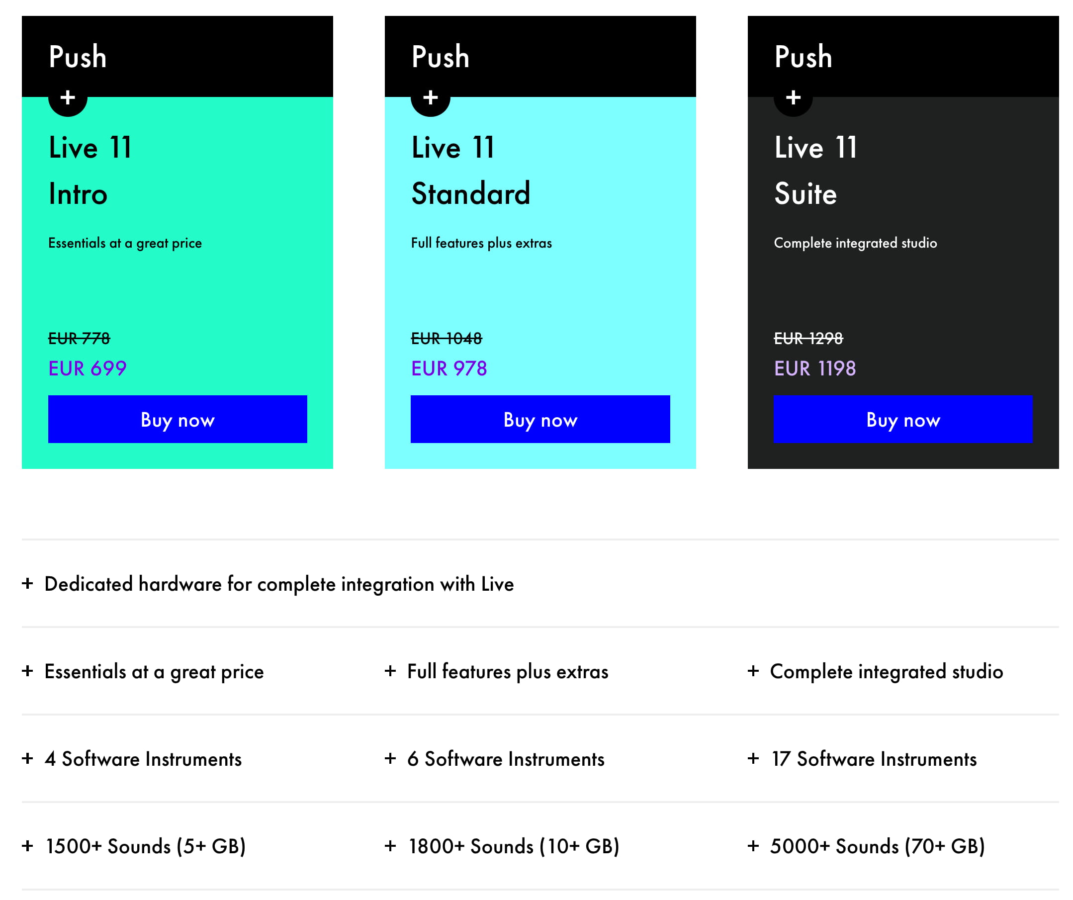 On Ableton, all attributes are also grouped into accordions. Instead of using a chevron on the right, the + icon is used on the left. A click on any of the items opens a card for the entire row.