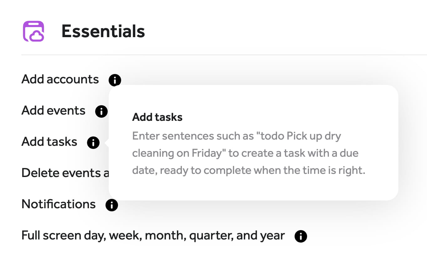 Yet again, a problem that’s too common: tooltips cover upcoming features and make it difficult to navigate from one feature to the next quickly. Point in case: Fantastical.