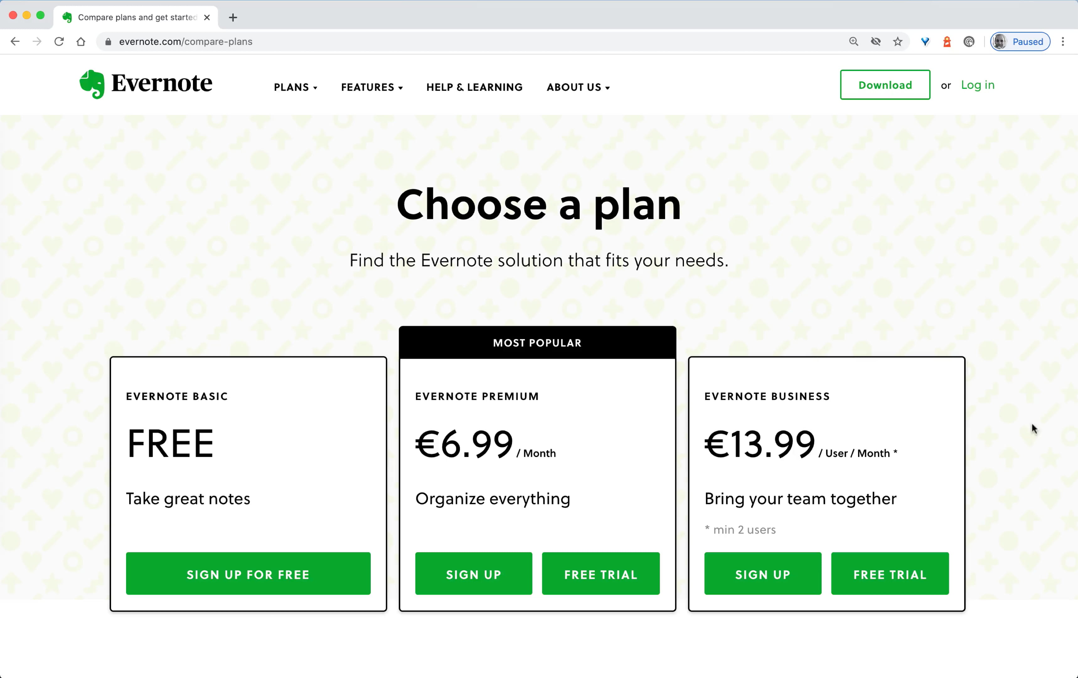However, it’s important to show enough details to make it clear to customers what the differences between plans are. For a while, Evernote was just displaying the plans within a table but not explaining the difference between them. Also, it might not be very obvious how “Sign up” and “Free trial” differ. That’s slightly confusing and oversimplified.