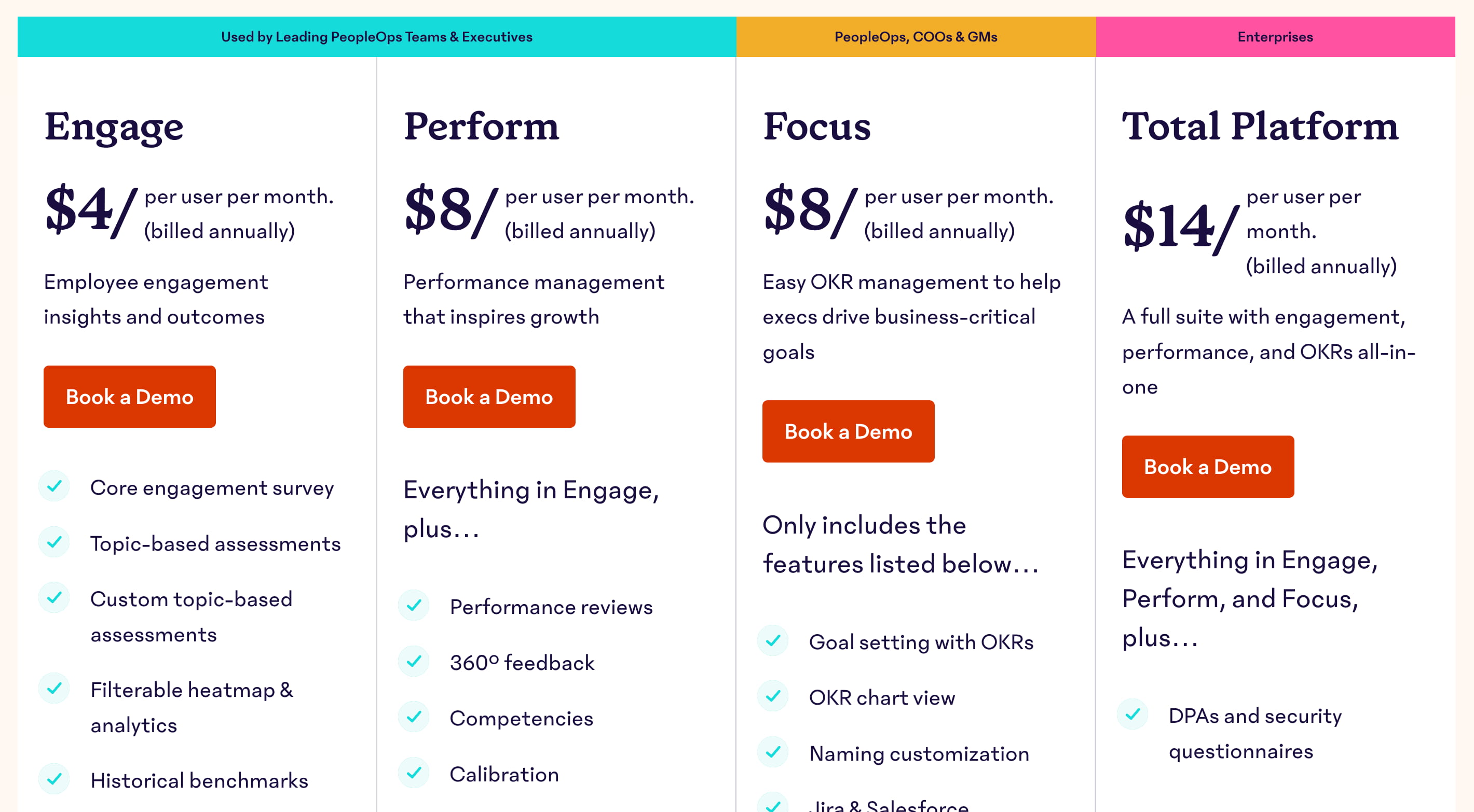 15five explains by whom each plan is typically used — from PeopleOps teams to COOs and enterprises. This might nudge the decision enough without having to compare the features at all!