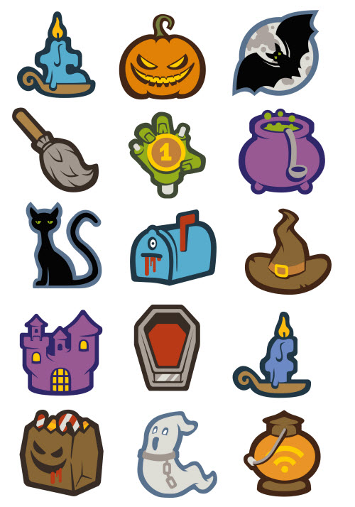 This special Halloween icon set was inspired by classic cartoons. Spice up your website or application with a spooky Halloween atmosphere.