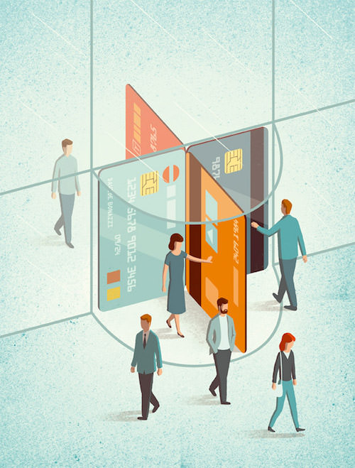 What an awesome idea to use a revolving door to illustrate ‘how to manage your checking account’. I also very much like how the darker color is giving the figures a bit of volume. Again, perfect shadow and light which makes it so beautiful.