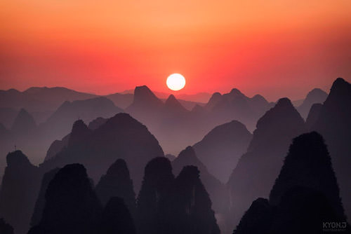 Check out this stunning photograph by Kyon.J, captured from high above the city of Guilin, China. It almost doesn’t look real.