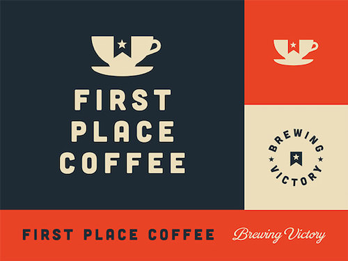 Identity for First Place Coffee. Smart how the star ribbon is cut out in the coffee cup.