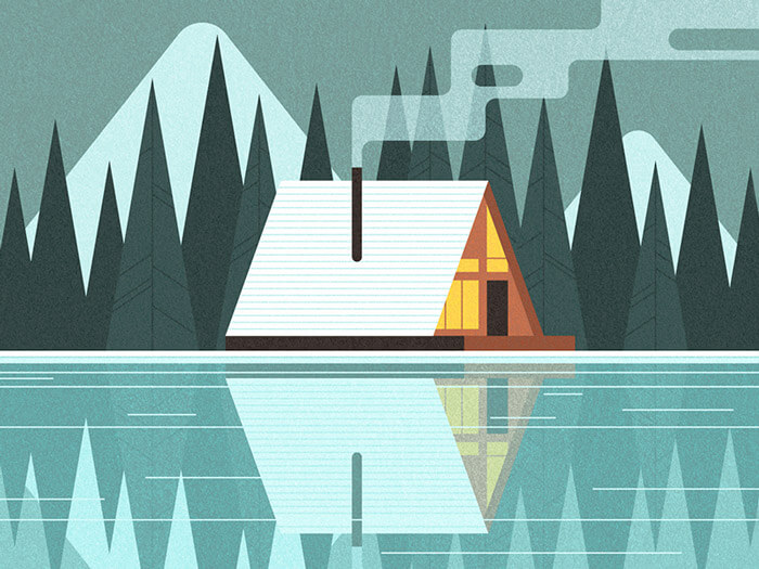 That smoke! A cozy winter getaway with great textures. The reflection on the water is so perfectly done, too.