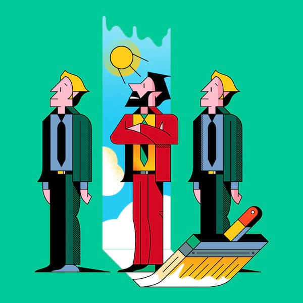 The shapes of the faces are refreshing. Not easy to achieve this perfection to draw people in this geometrical style. The color palette is also very well done and eye-catching.