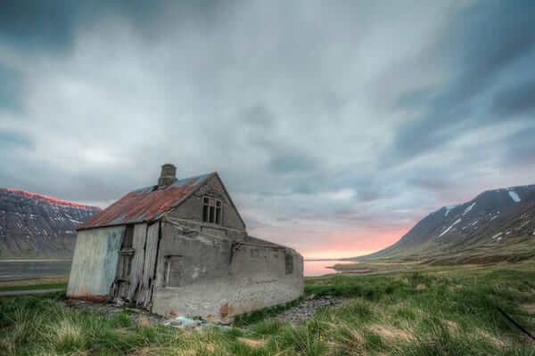 Abandoned house in Önundarfjörður in the West Fjords of Iceland. Iceland is a pretty photogenic place. This was taken around 3 in the morning. The light on the mountainside is fantastic!