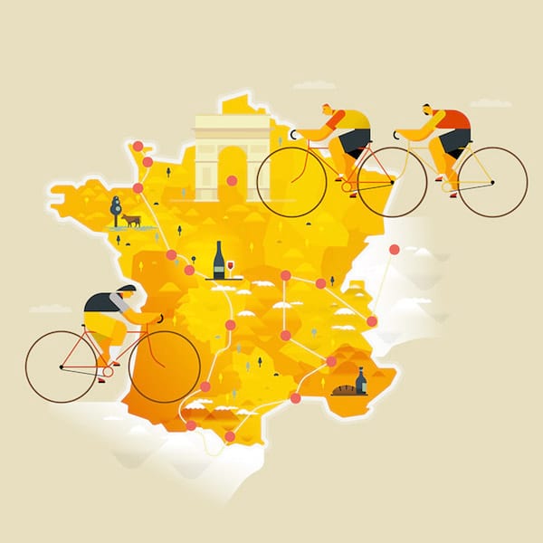 Nice little tribute to what many will call ‘the greatest cycling race of all’. Clever to work with bigger proportions for the bicycle. Beautiful color palette too.